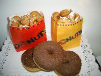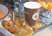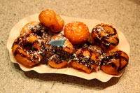 backfrische mini Donuts, wahlweise mit Puderzucker, Zimt-Zucker, oder Vanille-Zucker